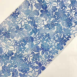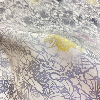 前回御紹介した紅型風の染め帯シリーズですが人気の声が高かったこともあって今回も入選です。青色だけでなく控えめなグレー基調の染め帯をセレクトしました。帯合わせしやすい色をぜひご活用くださいませ。